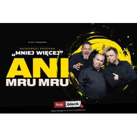 bilety: W najnowszym programie "Mniej więcej" Kabaret Ani Mru-Mru ponownie zaskakuje i rozbawia, eksplorując absurdalne strony codzienności. To legendarna grupa, której kultowe skecze na stałe wpisały się w historię polskiego kabaretu. Nie zwlekaj - zarezerwuj swój jesienny wieczór już dziś i dołącz do tysięcy fanów, którzy nie wyobrażają sobie kabaretu bez Ani Mru-Mru! Bilety do nabycia na: KupBilecik.plKabaret Ani Mru-Mru artyści: Michał Wójcik, Marcin Wójcik, Waldemar WilkołekKabaret Ani Mru-Mru powstał w Lublinie w grudniu 1999 roku. Po szybkich i skutecznych roszadach personalnych od bez mała dwunastu lat występuje i bawi publiczność w trzyosobowym składzie. Marcin Wójcik, Michał Wójcik oraz Waldemar Wilkołek. Jak twierdzą ich wspólni znajomi, i tak kiedyś na pewno wpadliby na siebie na ulicy. Mają to samo poczucie humoru, a to sprawia, że świetnie się dogadują, zarówno na scenie jak i w życiu prywatnym. Rodzaj żartów, gagów i skeczy doskonale trafił nie tylko w gusta szerokiej publiczności w całym kraju, ale również środowiska. Ani Mru-Mru jest laureatem wszystkich najbardziej prestiżowych przeglądów i festiwali kabaretowych. Bilety do nabycia na: KupBilecik.pl |