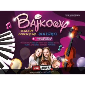 bilety: Wyjątkowy koncert muzyczno-edukacyjny dedykowany dzieciom w wieku przedszkolnym, będących fanami najpopularniejszych bajek animowanych. Muzycy zabiorą najmłodszych w muzyczną podróż po świecie bajek Walta Disneya, takich jak Vaiana, Kraina Lodu, Herkules, Pocahontas, Piękna i Bestia, Król Lew, Królewna Śnieżka, a także do krainy Smerfów i Gumisiów. Maluchy usłyszą swoje ulubione piosenki w zachwycających aranżacjach na głosy wokalne i kwartet smyczkowy. W programie znalazły się między innymi utwory z takich bajek jak: Królewna Śnieżka ("Tam, przez cienisty bór"), Król Lew ("Can You Feel the Love Tonight"), Pocahontas ("Kolorowy wiatr"), Herkules ("Droga mi nie straszna") oraz Kraina Lodu ("Mam tę moc"). Dajcie się porwać niezwykłym bajkowym postaciom i śmiało włączajcie się do wspólnego śpiewania! Zaczarowany świat bajek czeka na Was! Bajkowy koncert artyści: Różni artyściWyjątkowy koncert muzyczno-edukacyjny dedykowany dzieciom w wieku przedszkolnym, będących fanami najpopularniejszych bajek animowanych. Muzycy zabiorą najmłodszych w muzyczną podróż po świecie bajek Walta Disneya, takich jak Vaiana, Kraina Lodu, Herkules, Pocahontas, Piękna i Bestia, Król Lew, Królewna Śnieżka, a także do krainy Smerfów i Gumisiów. Bilety do nabycia na: KupBilecik.pl |